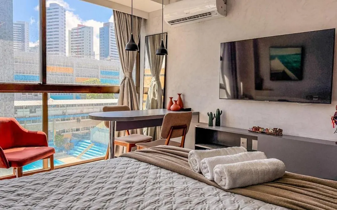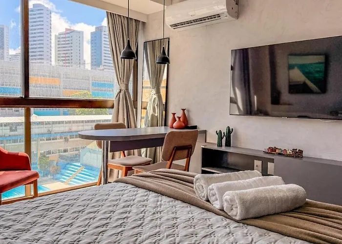 Flat 3 Pessoas Piscina Aquecida Em 6X Sem Juros Apartamento Recife está situado no bairro Boa Viagem em Recife, a 6 minutos a pé de Vicalli do bar de vinhos. Este apartamento também oferece a oportunidade de relaxar com serviços de beleza.